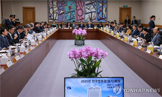 | ▲ 전국법원장회의 개최 각급 법원장들이 12일 서울 서초구 대법원에서 열린 전국법원장회의 임시회의에 참석해 있다. |