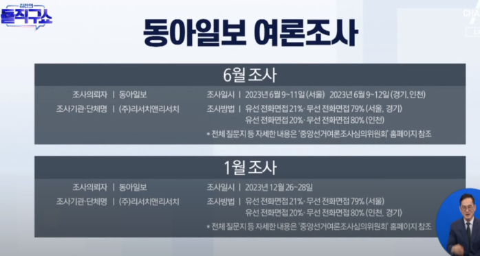 지난해 6월 동아일보 여론조사와 비교하면 국민의힘 후보를 뽑겠다는 응답이 30.8%에서 3.8%포인트 상승하고, 민주당 후보를 뽑겠다는 응답은 35.1%에서 1.6%포인트 하락한 것이다. '아직 결정하지 못했다'는 지지 유보층은 26.5%로, 6개월 전(29.2%)보다 2.7%포인트 하락했다.