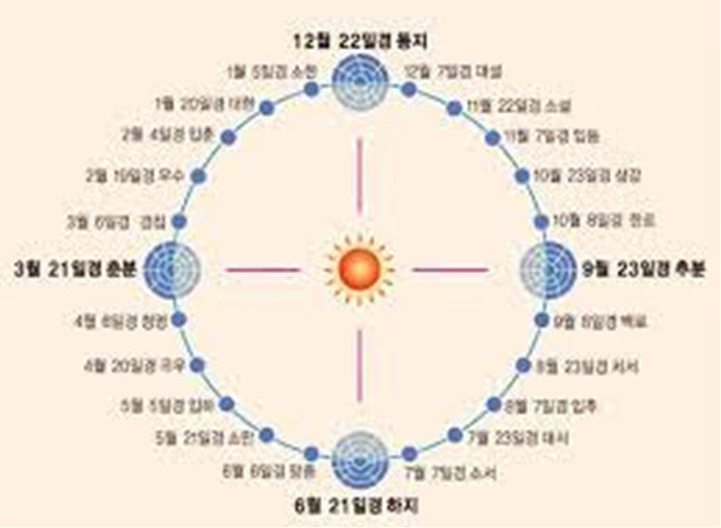 오늘은 춥지만 절기상 입춘이다. '춘(春)', '봄'자 소리만 들어도 기분 좋다. 왜 오늘이 입춘인지는 다음 지도를 보면 안다. 우리가 잘 알고 있는 24절기는 태양의 움직임을 이용하여 24개의 지점으로 구분한 표시를 말한다. 한 달에 2개의 절기가 반드시 들어가며, 계절당 6개의 절기로 이루어지며 3개월마다 바뀌는 계절의 변화를 말한다.