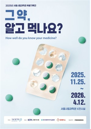 서울시립과학관은 11월 25일부터 내년 4월 12일까지 '그 약, 알고 먹나요?' 특별전을 개최한다고 밝혔다.