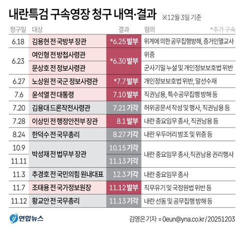 앞서 조은석 내란 특별검사팀은 지난달 추 의원에 대해 내란 중요임무 종사 혐의로 구속영장을 청구했다.