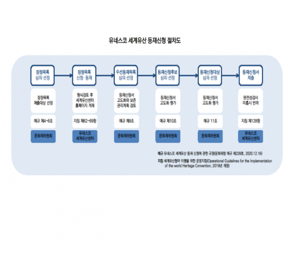 올해 1월 기준 대한민국의 세계유산 잠정목록은 총 12건으로 잠정목록은 해당 국가가 신청서를 제출하면 세계유산센터의 서류 형식 검토를 거쳐 유네스코에 등록된다.