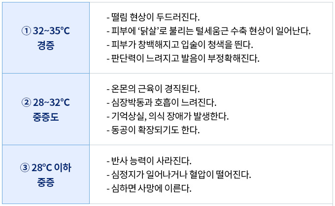 체온이 낮아질수록 위험도가 올라가는 저체온증