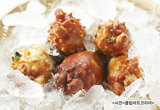 단단한 몸체에 돌기가 많은 생김새 때문에 ‘바다의 파인애플’이라고도 불리며, 3월에서 5월이 제철인데 특히 이때 나는 멍게에는 지방질이 거의 없는 저칼로리 다이어트 음식으로 인기가 높다.