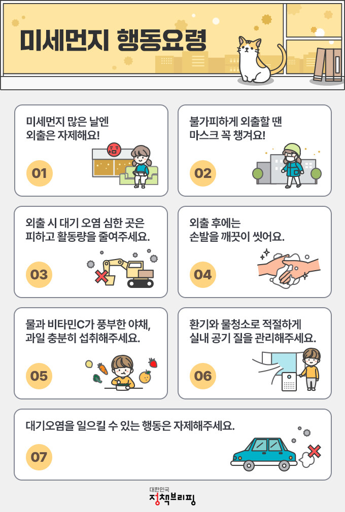 1. 미세먼지 많은 날엔 외출은 자제한다.