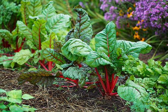 부드럽고 짙은 녹색의 잎과 두껍고 선명한 줄기를 가지고 있는 근대.