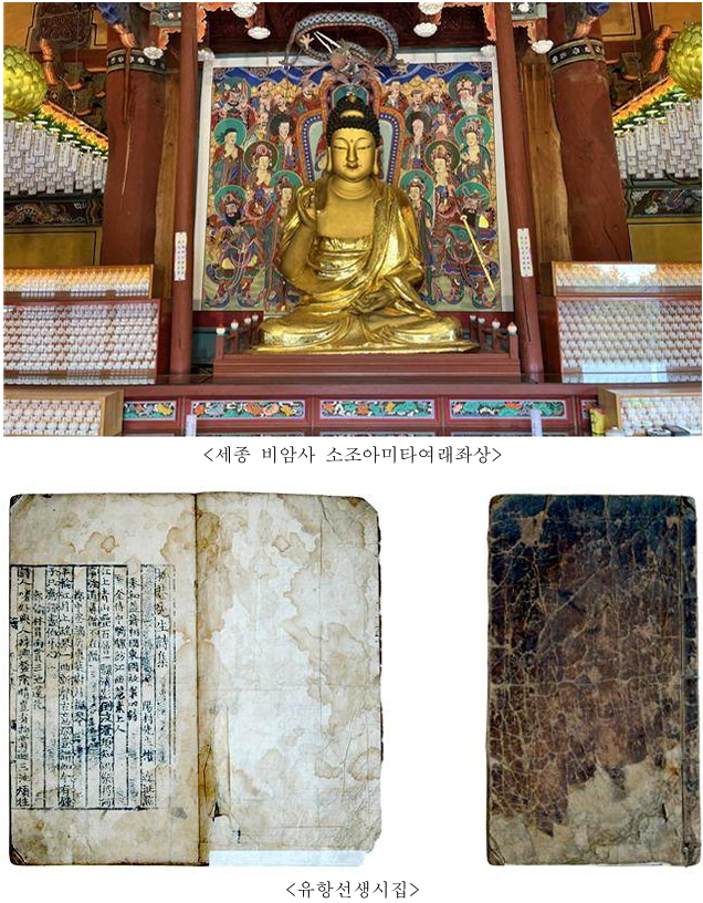'세종 비암사 소조아미타여래좌상'은 16세기 중엽에 제작된 것으로 추정되며, 소조불로 제작된 이 불상은 희소성이 높다. 나무로 윤곽을 만든 후 소량의 흙으로 세부를 완성하는 독특한 제작 방식이 특징이다. 이 불상은 조선 전기 소조불 연구에 중요한 자료로 여겨진다.