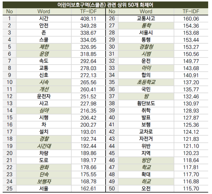 윤 의원은 24일, 빅데이터 분석을 통해 서울시 어린이보호구역의 24시간 속도제한 정책에 대한 시민들의 변화 요구가 명확히 드러났다고 밝혔다.