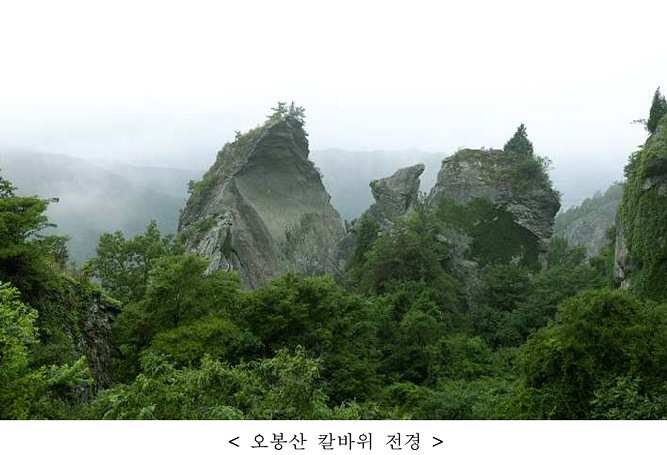 보성 오봉산 용추동과 칼바위 일원은 신증동국여지승람과 동국여지지 등 여러 고문헌에 기록된 경승지로, 등산로를 따라 풍혈지와 칼바위 등의 기암 경관이 펼쳐진다.