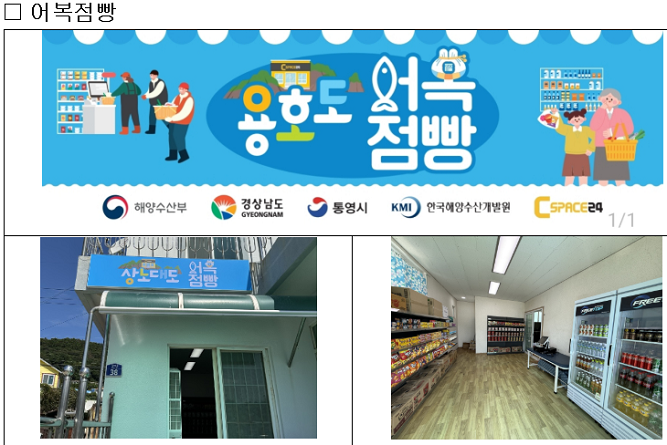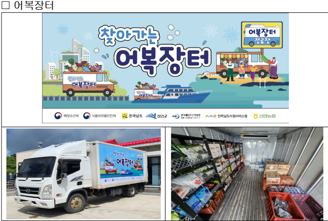 이번 시범사업은 인구 감소로 인해 식품사막화가 진행 중인 섬을 대상으로 하며, 섬의 접근성과 위치를 고려해 신선식품을 싣고 찾아가는 '어복장터'와 가공식품과 생필품을 파는 '어복점빵'을 각각 시범 운영한다.