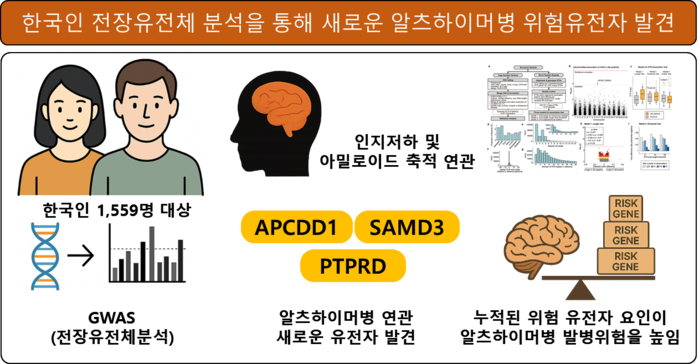이에 연구진은 한국인 대상 정밀 영상·유전체 통합 연구 플랫폼을 활용해 뇌영상에서 확인된 베타 아밀로이드 축적 정보와 전장 유전체 데이터를 함께 분석했다.