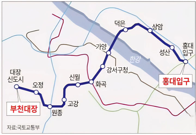 | ▲대장홍대선 확정 노선도 (자료: 국토부) |