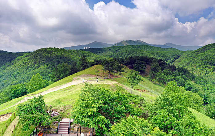 | ▲두타산을 배경으로 한 벨포레목장 전경. (사진 = 박산하 촬영) |