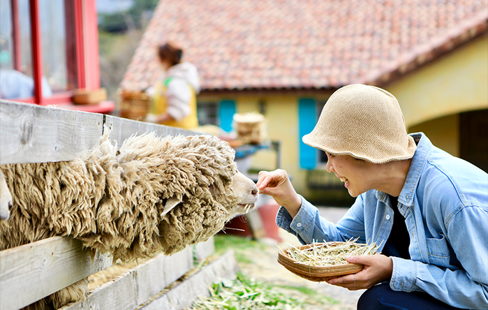 | ▲양들에게 먹이 주는 체험을 할 수 있다. (사진 = 이시우 촬영) |