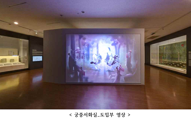 전시 도입부에서는 '요지연도' 속 서왕모의 연회에 초대받은 신선들의 모습을 담은 영상이 관람객을 궁중서화의 세계로 이끈다. 전시실 안쪽에서는 시간의 흐름에 따라 다양한 궁중서화를 감상할 수 있다.