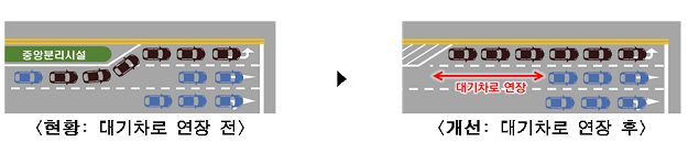이번 사업은 교통 정체 완화와 안전 확보를 목표로 하며, 차로 증설과 대기차로 연장 등을 통해 교통 흐름을 개선한다.