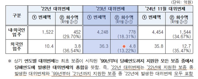외국인 자영업자 대위변제금 급증, 법적 지원 근거도 모호…관리 부재 우려