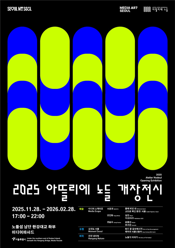 서울 한강의 새로운 문화 랜드마크가 될 '아뜰리에 노들'이 11월 28일 개장한다. 이곳은 한강대교 하부에 위치한 공공 미디어아트 전시 플랫폼으로, 매일 오후 5시부터 10시까지 운영된다. 서울시는 이 공간을 통해 도시와 자연, 예술을 잇는 특별한 경험을 시민들에게 제공할 계획이다.