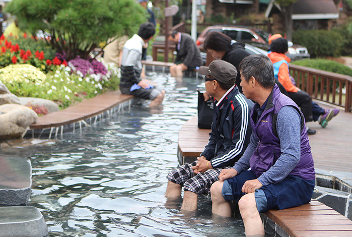 | ▲대한민국 온천대축제가 열린 축제장에서 관광객들이 족욕체험을 하고 있다. (사진=연합뉴스} |