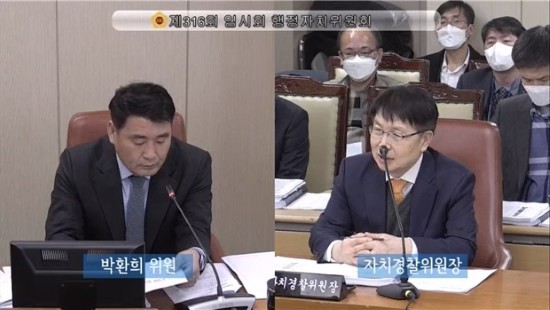 | ▲ 박환희 운영위원장이 자치경찰위원회 업무보고에서 질의를 하고 있다. [사진=서울시의회] |