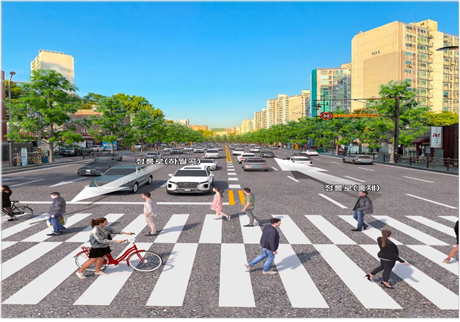 | ▲시행 후 정릉로(정릉입구교차로 부근) |