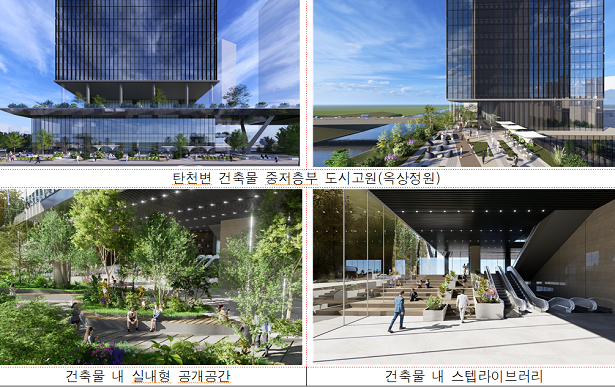 또한, 탄천과 한강을 조망할 수 있는 공중 보행산책로가 조성되며, 테헤란로와 사업부지를 잇는 도로 폭이 확장된다.