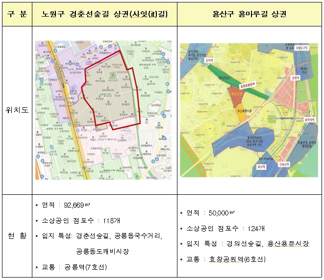 이번에 선정된 골목상권은 경춘선숲길, 용마루길 총 2곳이다.