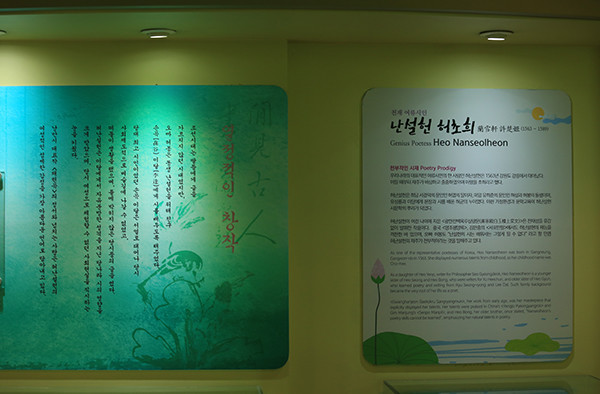| ▲허균·허난설헌 기념관 내부. 천재 여류시인이라는 설명이 붙어있다. |