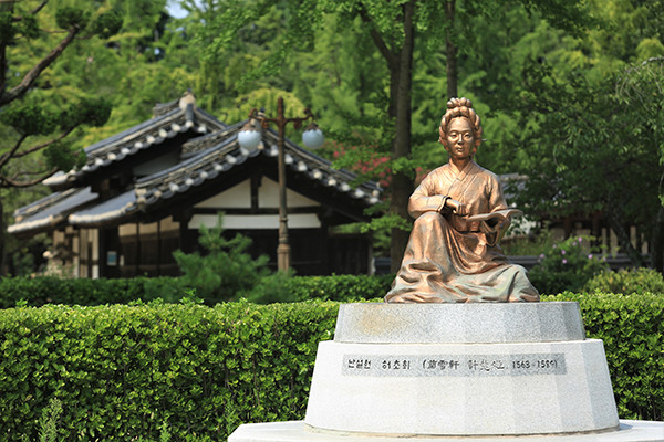 시인 허영숙은 시 「물가에 목란배를 매어두고」에서 「…연꽃 무성한 곳에/ 목란배를 매어두고 한사람 기다리던 초희/ 아득한 행간을 당기고 밀며/ 산맥처럼 밤을 넘어간다… 잠깐 살고 오래 울다간 사람의 생가에서 바라본 경포호/ 저 물길에 마음을 놓아/ 일필로 저어가면/ 먼 바깥을 보고자 한 깊은 심사(心思)에 닿을까」라고 쓰고 있다. ‘잠깐 살고 오래 울다간 사람’이라는 표현에 눈길이 머문다. 허난설헌이 나고 자란 강릉시 초당동 생가 앞길이 ‘난설헌로’로 이름 지어졌고, 울창한 소나무 군락 옆에 공원과 기념관이 세워져 많은 사람들이 찾고 있다.