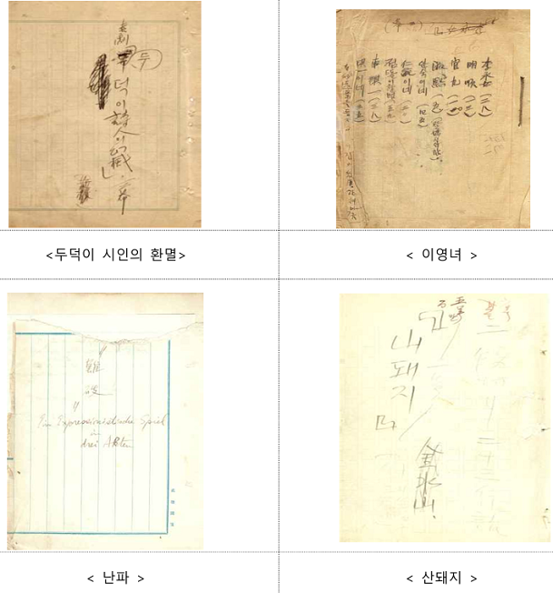 이번에 등록된 희곡은 '두덕이 시인의 환멸', '이영녀', '난파', '산돼지'로 구성됐다.