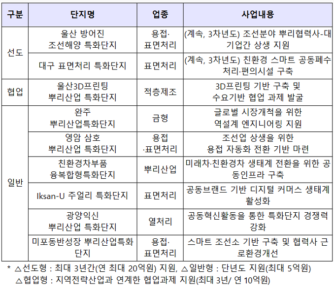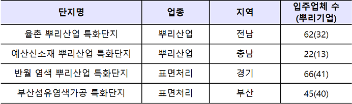 | ▲(신규 지정) 율촌 뿌리산업 특화단지 등 4개 단지 |