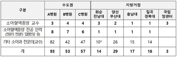 또한 소아암 진료를 위해 수련을 마친 세부전문의는 전국적으로 69명에 불과하고 소아과 전공의 확보율이 2020년 68.2%에서 지난해 27.5%까지 급감하고 있는 상황이다.