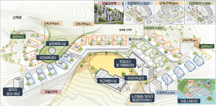 이 사업은 단독주택과 타운하우스 등 다양한 유형과 분양·임대 등 공급방식의 주거를 맞춤형으로 제공하고 관계부처 협업으로 문화·복지 등 필수 생활서비스를 통합적으로 지원한다.