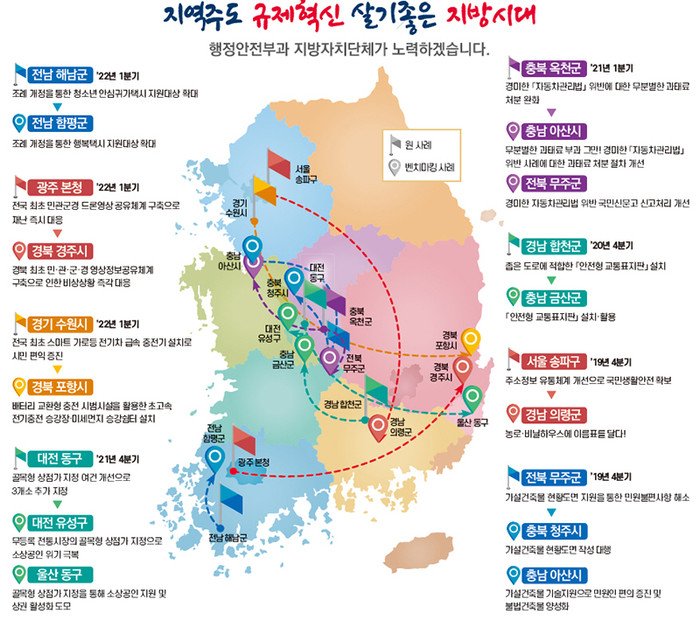이어 “앞으로도 지방자치단체와 함께 규제혁신 선도사례를 적극 발굴하고 공유·확산해 주민이 실감할 수 있는 생활의 변화를 만들어 가겠다”고 덧붙였다.