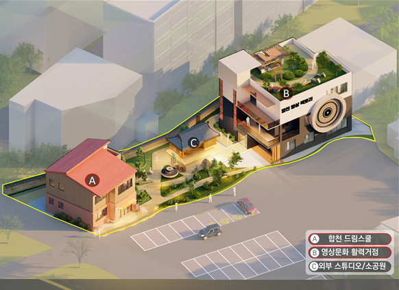 방문객 대상 영상 콘텐츠 체험장과 소규모 영화제 사무공간이 들어서는 ‘영상문화 활력거점’, 영상산업 인력 양성을 위한 ‘합천 드림스쿨’, 영화촬영 관계자 숙박공간인 ‘시네마 빌리지’ 등이 조성된다.