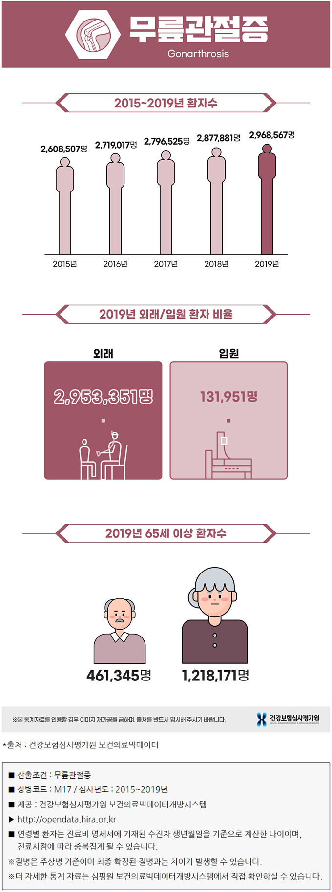 하지만 대부분 고령에서 질환이 발생하는 만큼 무릎관절 관리에 각별히 신경을 써주시는 게 좋습니다.