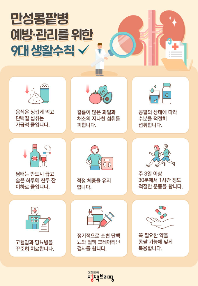 만성콩팥병 예방·관리 위한 9대 생활수칙을 알아본다.
