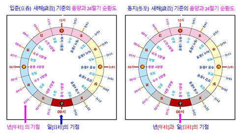 동지로 새해[年柱]를 정하고 자시(子時)로 날짜의 시작[日柱]을 정하면 음양·24절기·60갑자의 순환 법칙과 정확히 맞는다. 그러나 입춘(立春)으로 새해[年柱]를 정하고 자시(子時)로 날짜의 시작[日柱]을 정하는 기준은 음양·24절기·60갑자의 순환 법칙 그 어느 것과도 맞지 않는다.