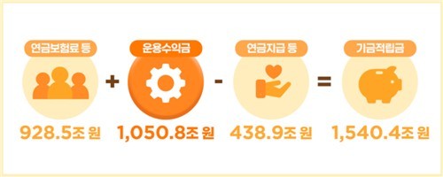 국민들이 지금까지 납부한 보험료는 총 928조 5000억 원이다. 이 중 연금 지급 및 관리비로 사용된 438조 9000억 원을 제외하면, 남은 보험료 원금은 489조 6000억 원이다. 결과적으로 현재 적립된 1540조 원의 자산 중 약 3분의 2가량이 투자 수익으로 얻어진 것이다.