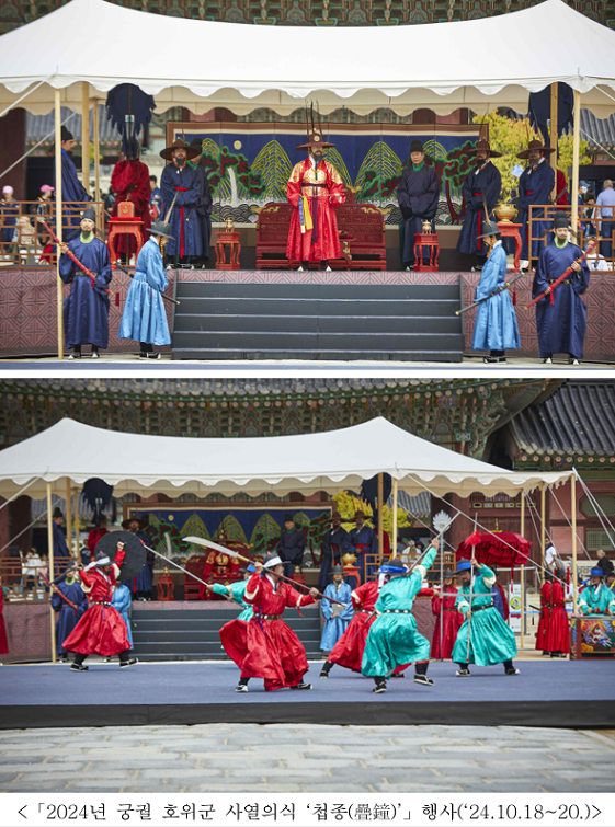 조선시대 국왕이 직접 호위군을 점검하는 군사 의식이 경복궁에서 재현된다. 국가유산청 궁능유적본부는 국가유산진흥원과 함께 10월 31일부터 11월 2일까지 경복궁 흥례문 광장에서 ‘궁궐 호위군 사열의식 첩종’ 행사를 개최한다고 밝혔다.