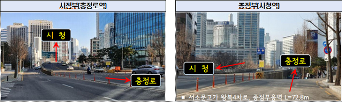 대중교통 이용자들을 위해 서소문로 시청역교차로에서 서소문고가 방면 380m 구간에 가로변 버스전용차로가 신설돼 전일제로 운영된다.
