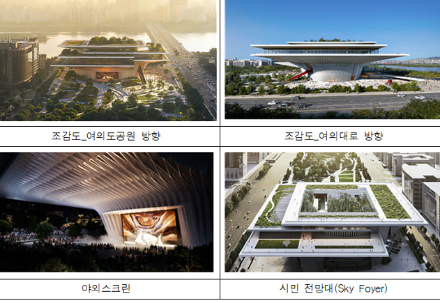 심사위원단은 “한강과 여의도공원, 여의대로 변 방향으로 열린 공간을 제시하여 도시적 맥락을 세심하게 해석한 점을 높이 평가했으며, 여의도의 새로운 문화적 랜드마크로서 도시와 조화롭게 어우러질 것으로 기대된다”고 밝혔다.