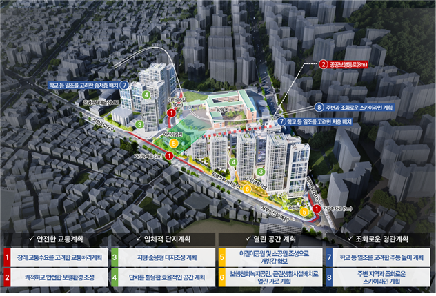 이번 신속통합기획은 학교와 주변 지역과 상생하는 열린 주거단지를 조성하는 데 중점을 뒀다. ▲지역과 연결되는 안전한 교통계획 ▲지형차를 고려한 입체적 단지계획 ▲지역과 소통하는 열린 공간 계획 ▲주변 지역과 조화로운 경관계획 수립이라는 4가지 계획 원칙을 마련했다.