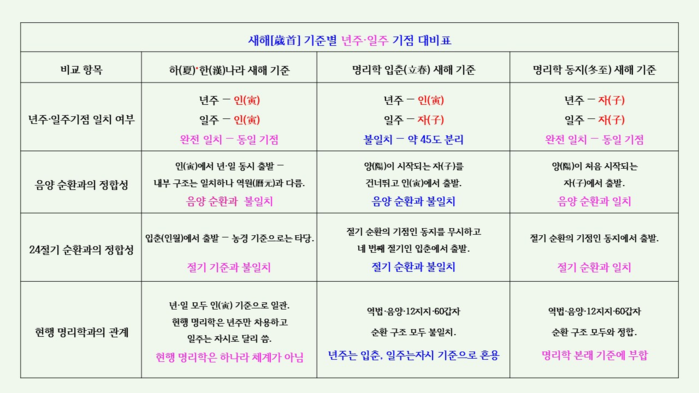 - 명리학 새해 기준은 ‘계절’이 아니라 ‘역법 구조’이다