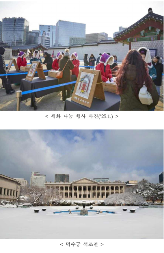 국가유산청은 "새해 첫 명절을 맞아 많은 국민들이 국가유산에서 풍성하고 따뜻한 시간을 보내기를 기대한다"고 밝혔다. 이번 행사는 국민들이 전통문화와 유산을 체험하며 안전하게 명절을 즐길 수 있는 기회를 제공할 것이다.