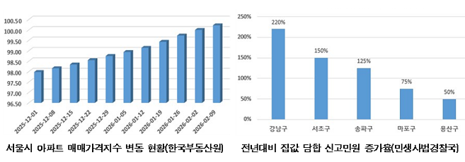 변경옥 서울시 민생사법경찰국장은 “집값 담합, 허위 거래 신고는 실수요자의 내 집 마련을 더 어렵게 만들고 시장 신뢰를 무너뜨려 부동산 거래 질서를 심각하게 훼손하는 행위”라며 “집값 담합 적발은 시민 제보가 결정적인 역할을 하는 만큼 적극적인 제보와 관심을 바란다”고 말했다.