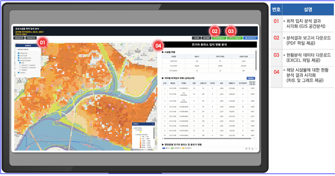 | ▲공공시설물 최적입지 분석결과 서비스화면(공무원 업무화면) |