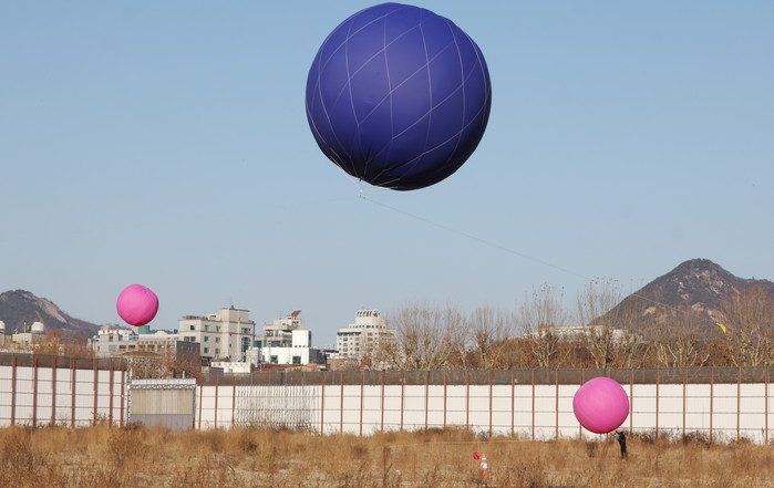 | ▲종묘 맞은편 세운4구역의 고층 건물 재개발 관련 공방이 뜨거운 가운데 지난달 25일 서울 세운4구역 부지에서 관계자들이 대형풍선을 설치하고 있다. 이 풍선은 부지 개발 관련 조망 시뮬레이션을 위해 설치했다. |