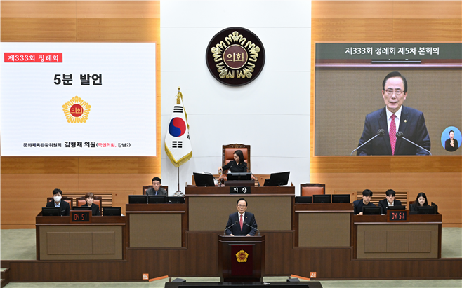 서울특별시의회 김형재 의원은 23일 서울시의회 제333회 정례회 본회의에서 최근 서울 지역 학교폭력이 증가하고 있다며, 서울시교육청이 학폭 고위험 학교에 대한 집중지원 체계를 즉각 가동해야 한다고 촉구했다.