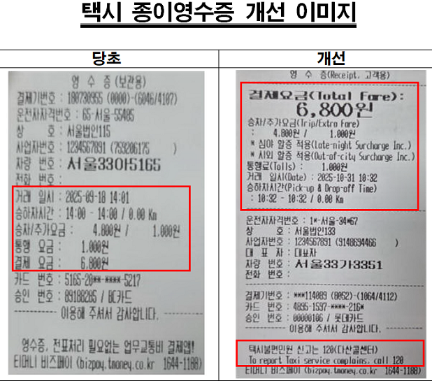 영문 병기된 영수증과 할증 표시로 외국인 편의 증대